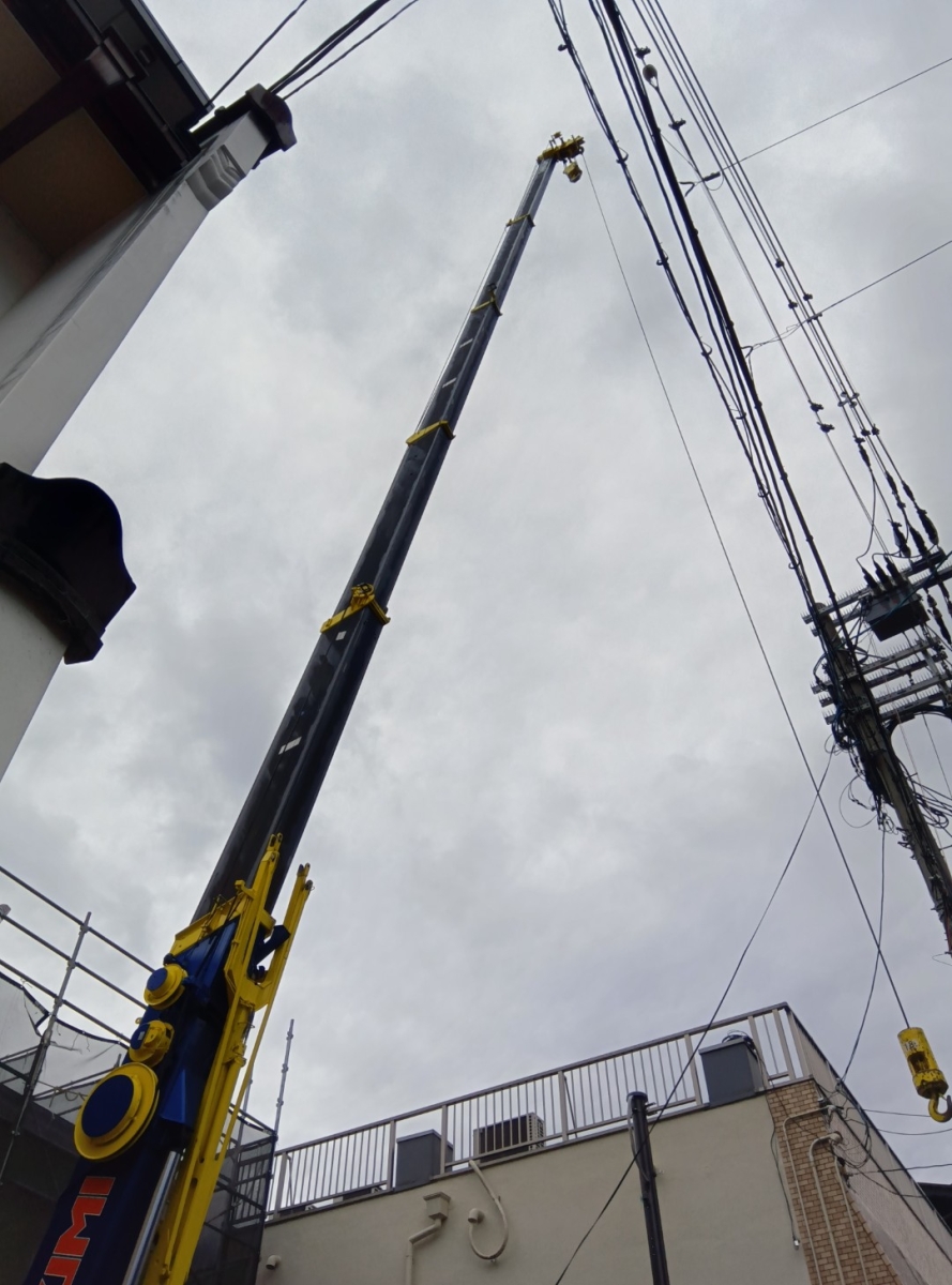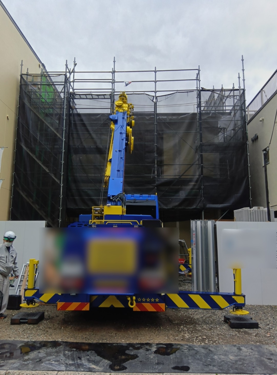 工事中現場につき足場がありますが、さすがに人力では2階へ上げられません。