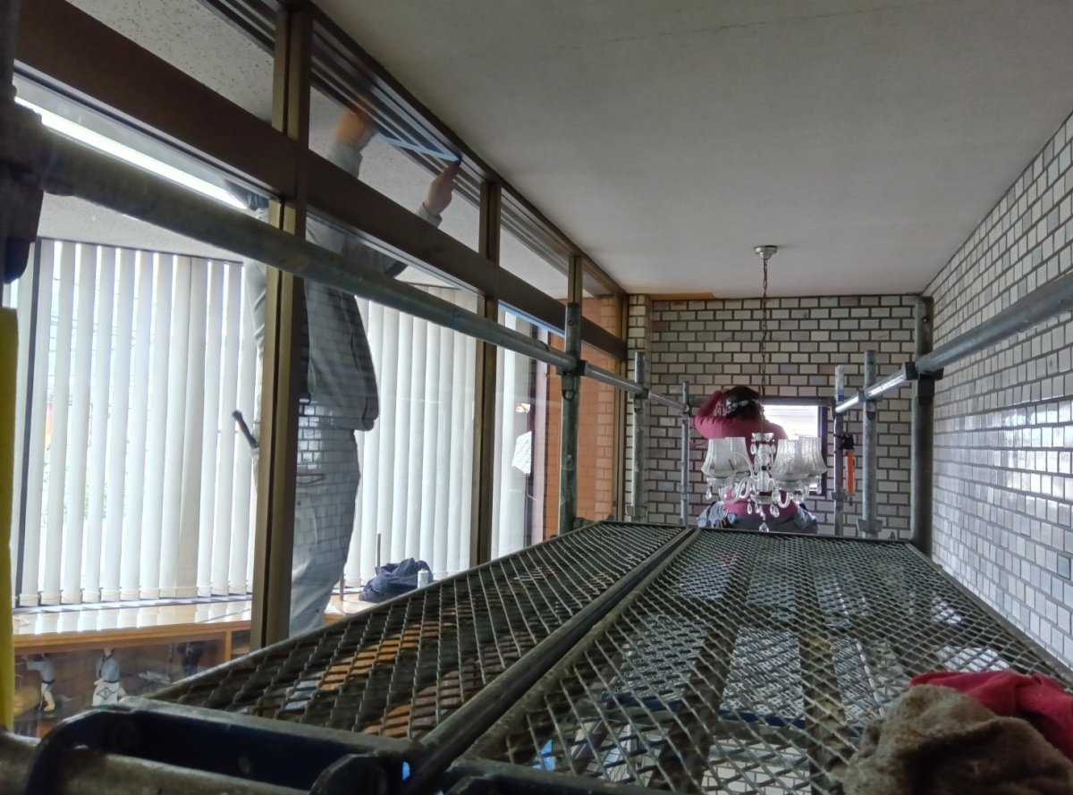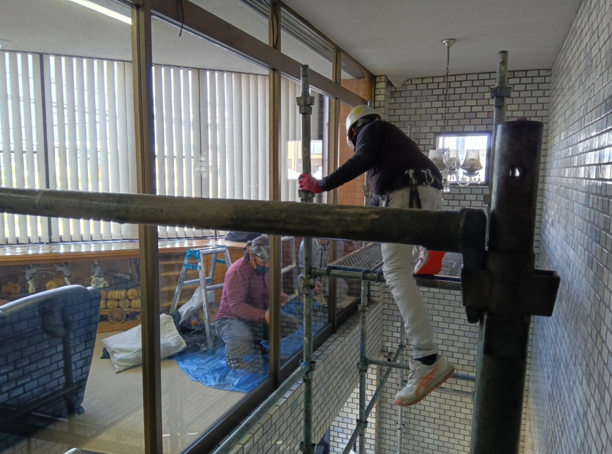 足場を設置してもらっている間に部屋内側の処置を並行して進めます。